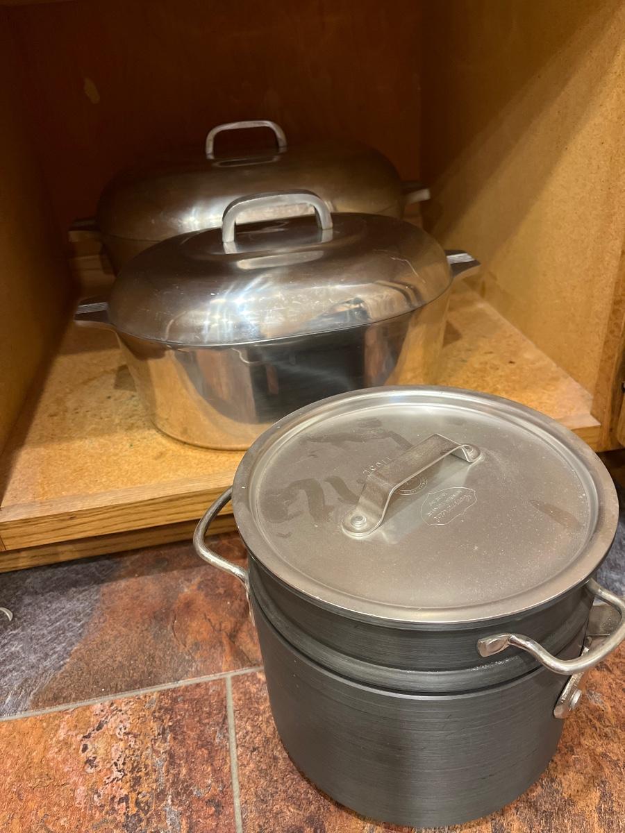 Two magnalite baking pans and a commercial double boiler