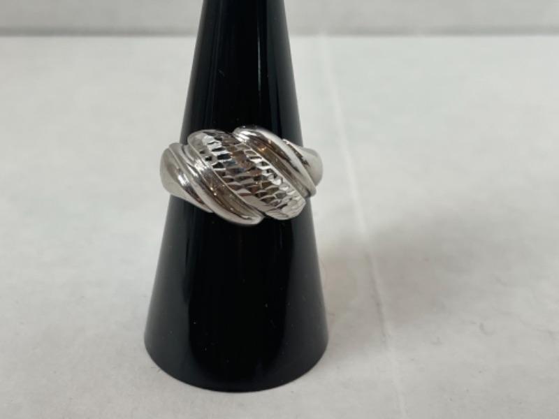 K583 10k Yellow Gold Diamond Cut Shrimp Style Ladies Ring Approximately size 8 weighs 3.2 grams