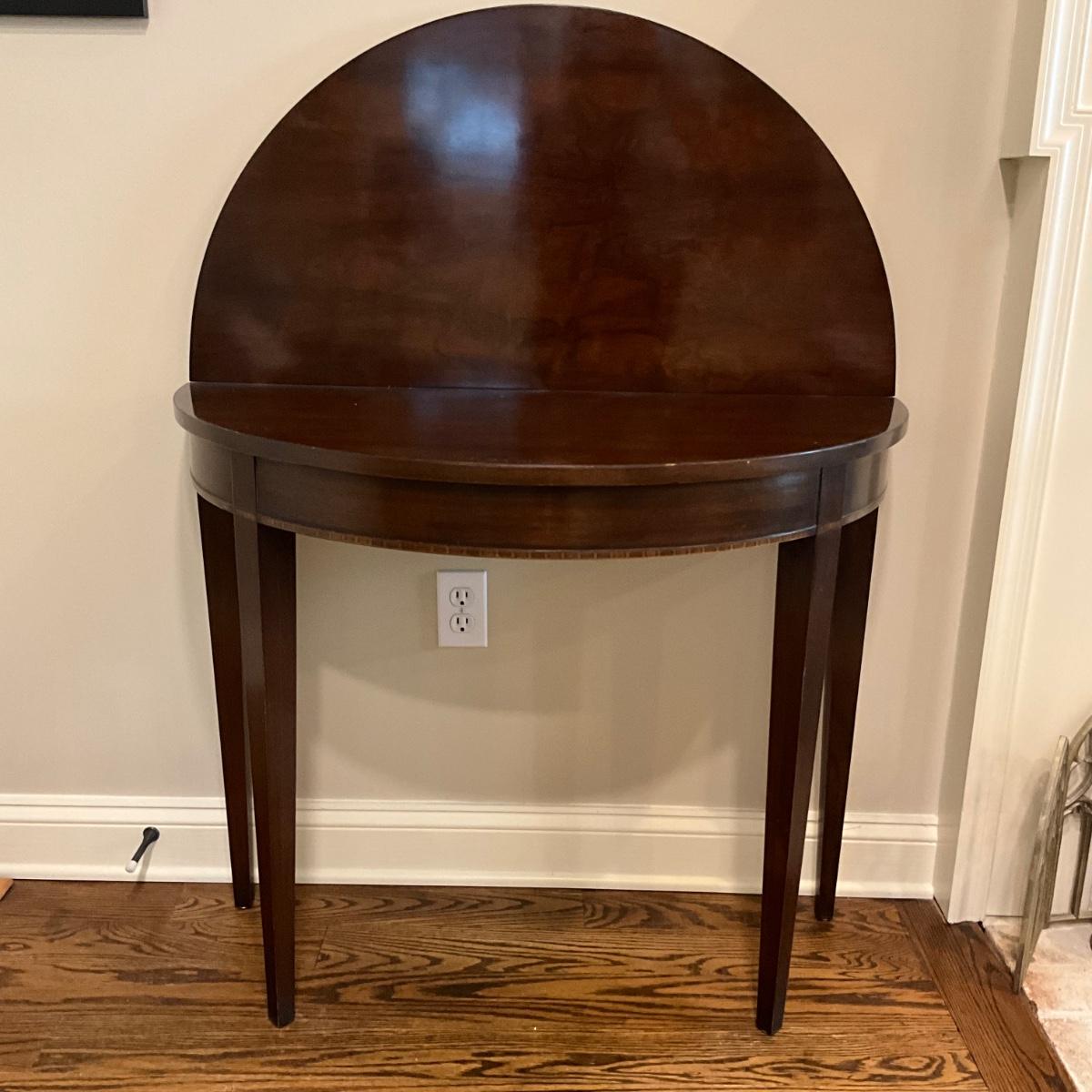 K584 Vintage Drexel Bicentennial Demilune Flip top Mahogany Table