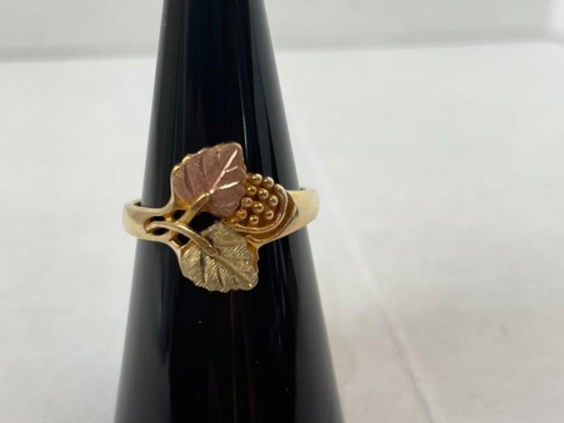 K585 10k Yellow and Rose Gold Grape Leaf Design Ladies Ring