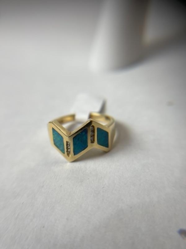 K588 14k Yellow Gold Opal and Diamond Ladies Ring