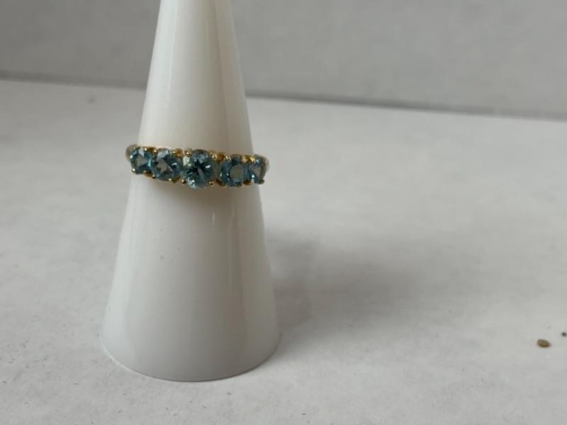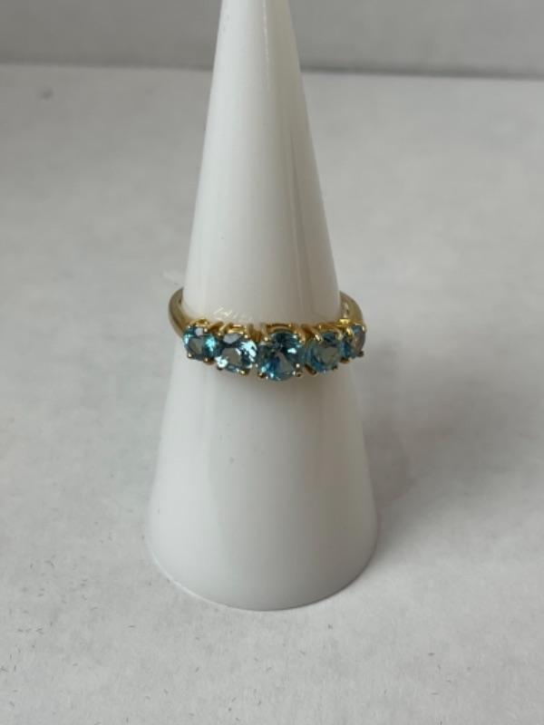 5 blue topaz graduated prong set ladies ring weighing 2.0gm and measures approximately size 6.75
