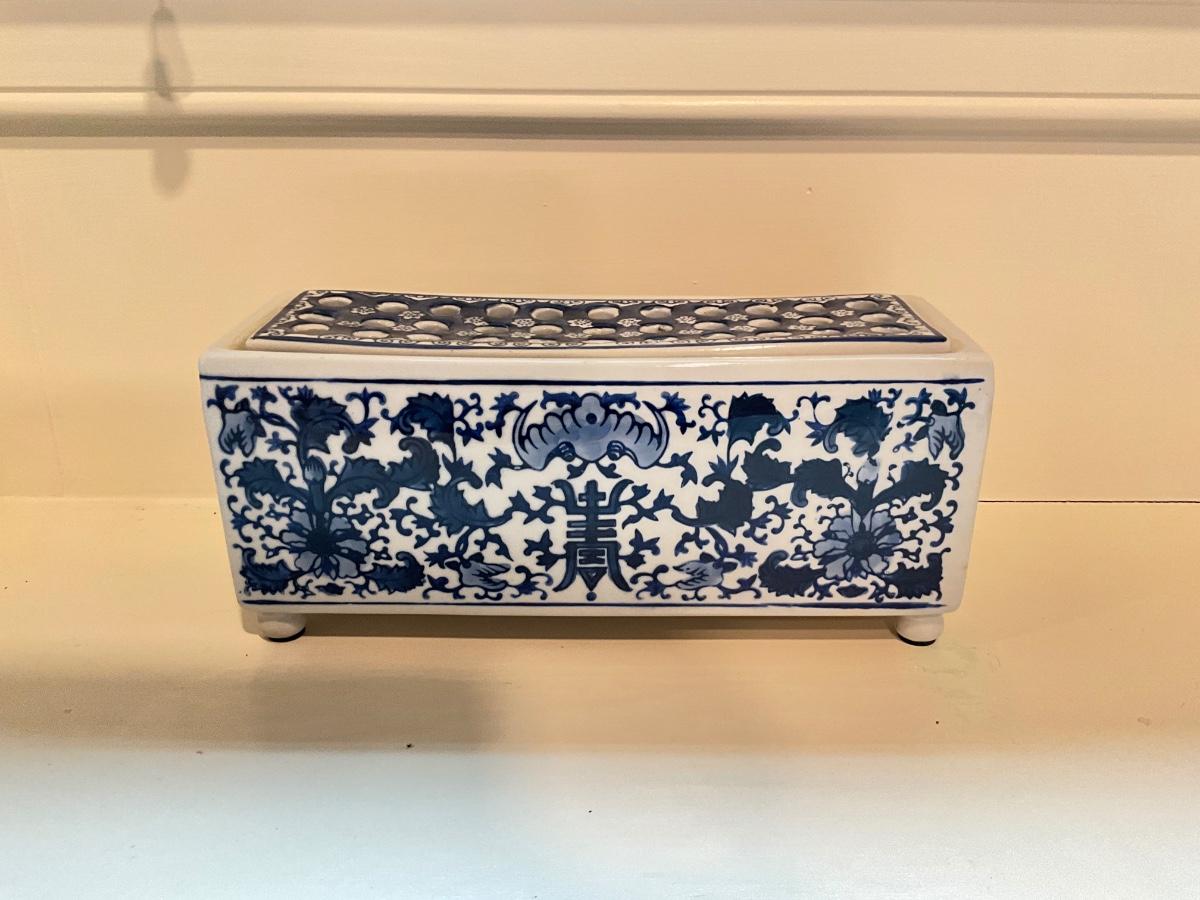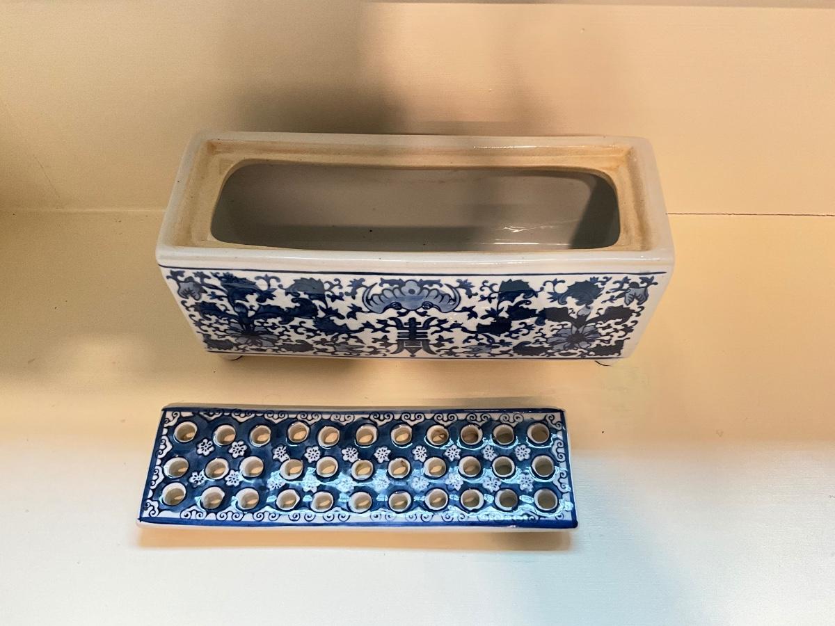 K597 Vintage Blue and White Pottery Tulipiere