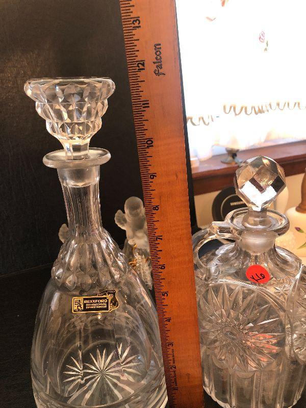 Nice lot of decanters for any bar! Please see all pictures for exact contents of the lot, condition of the items, and if measurements if taken. Thank you for looking and have fun bidding.
