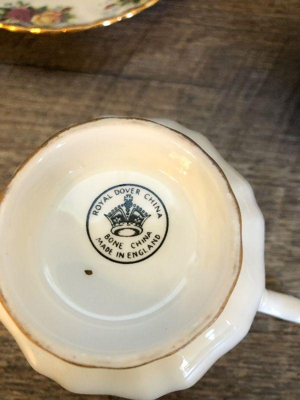 Royal Dover China Bone China Tea Cup. Please refer to photos for size and condition. Have fun and happy bidding.
