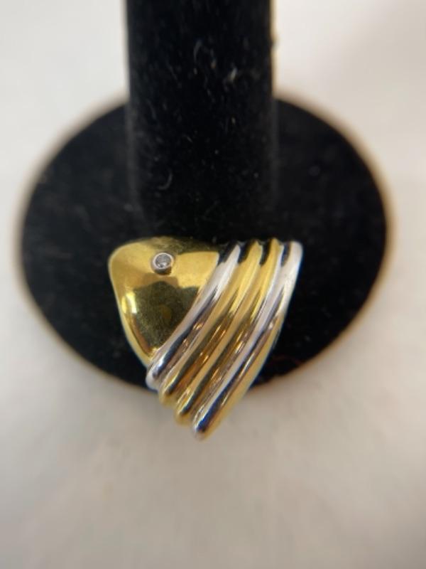 Diamond is bezel set and measures approximately. 05ct. Weighs 2.5grams