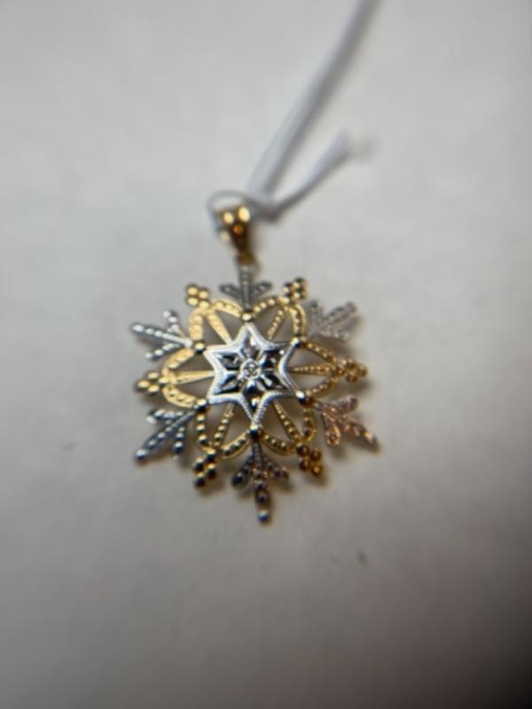 K615 14k Yellow and White Gold Large Snowflake Pendant