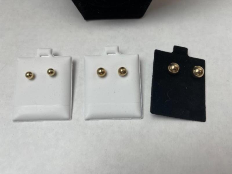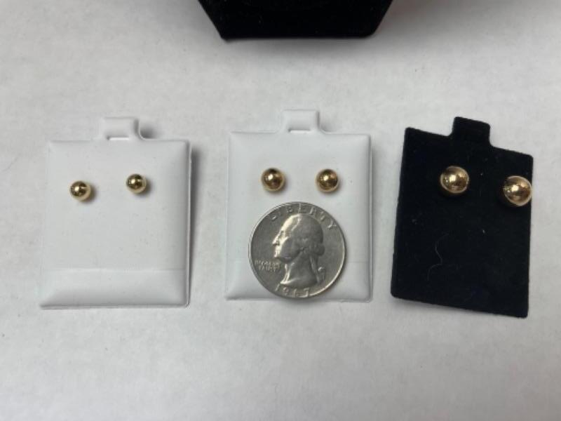 K619 Three Pairs of 14k Yellow Gold Ball pierced Earrings