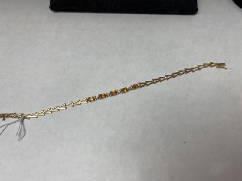 K621 14k Yellow Gold Topaz and Diamond Bracelet