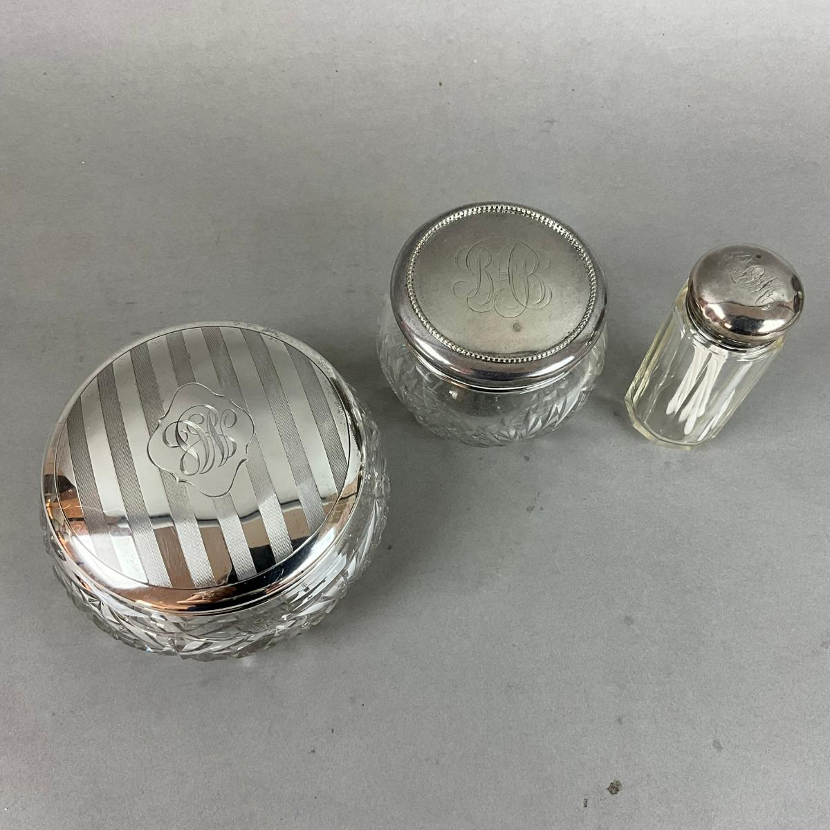 K623 Set Of Three Cut Crystal Sterling Lidded Dresser Jars