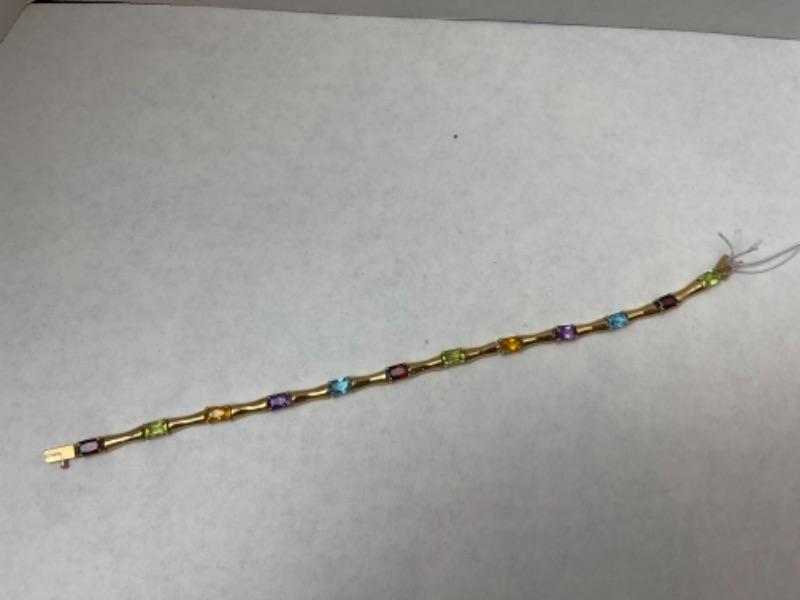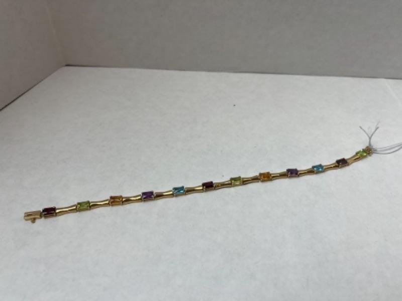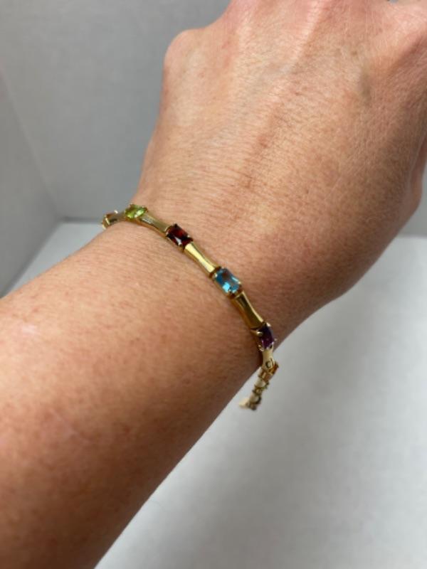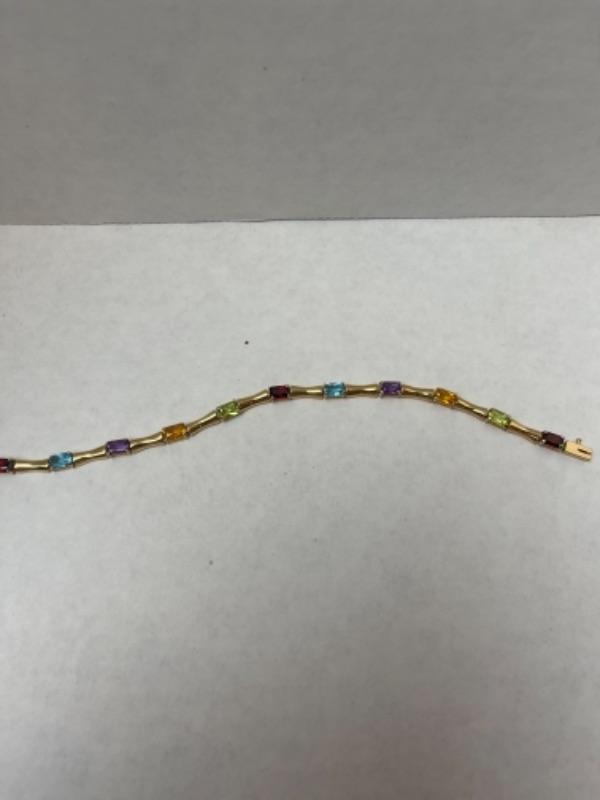 K627 14k Yellow Gold Multi Colored Stone Bracelet