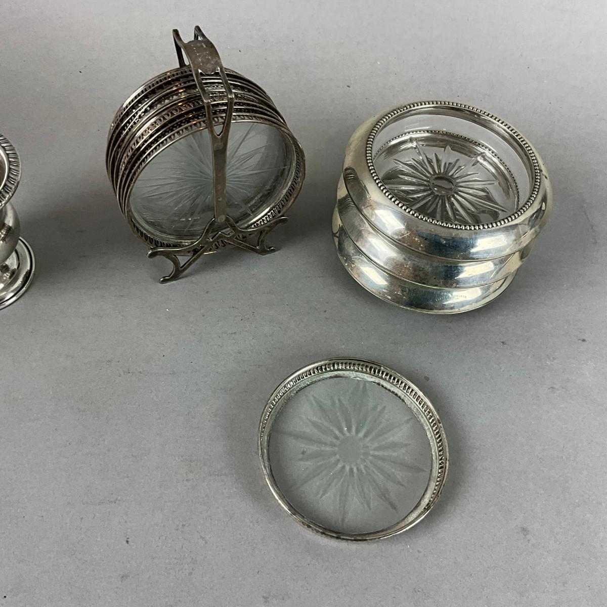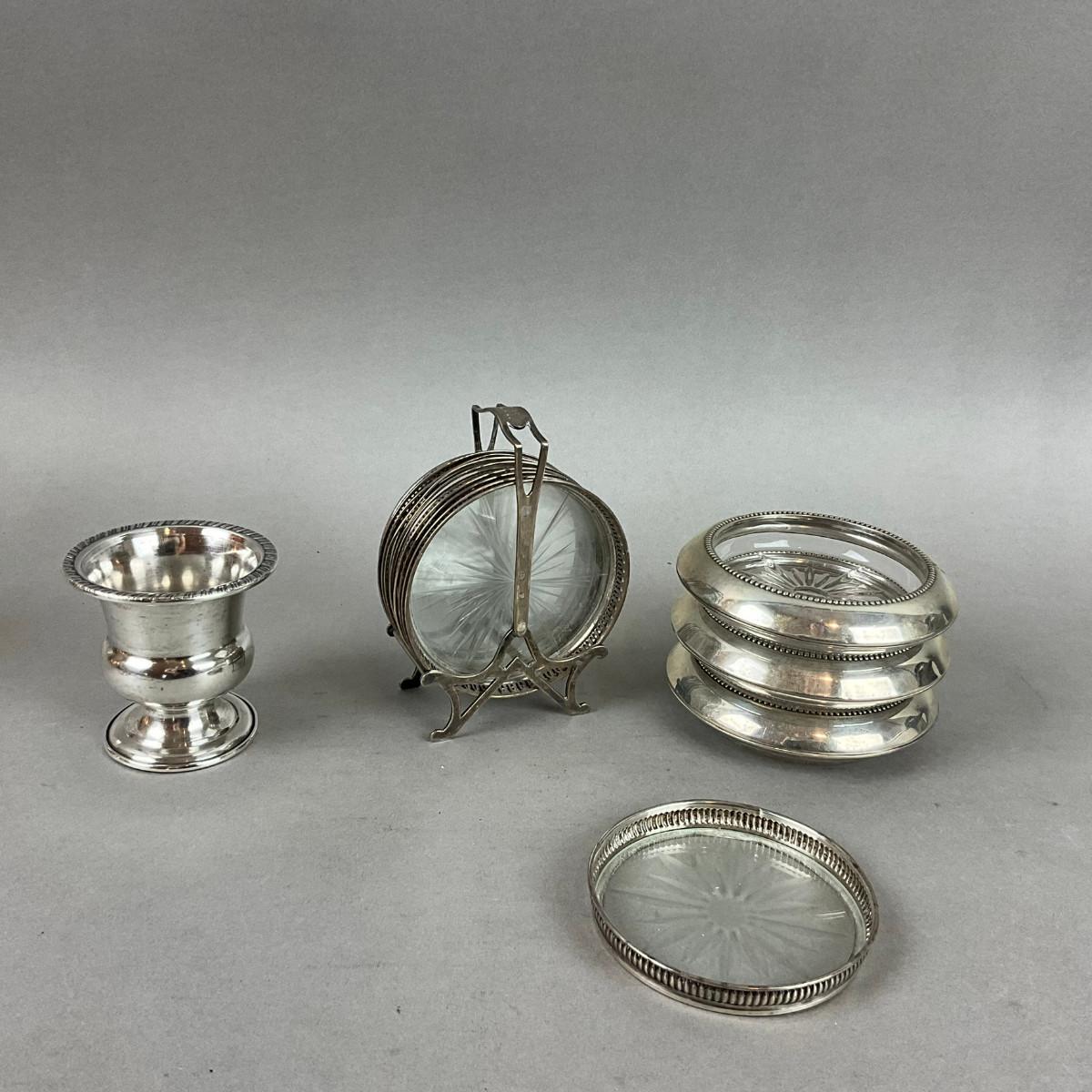 K631 Set Of Sterling Silver Glass Coasters Set With Toothpick Holder