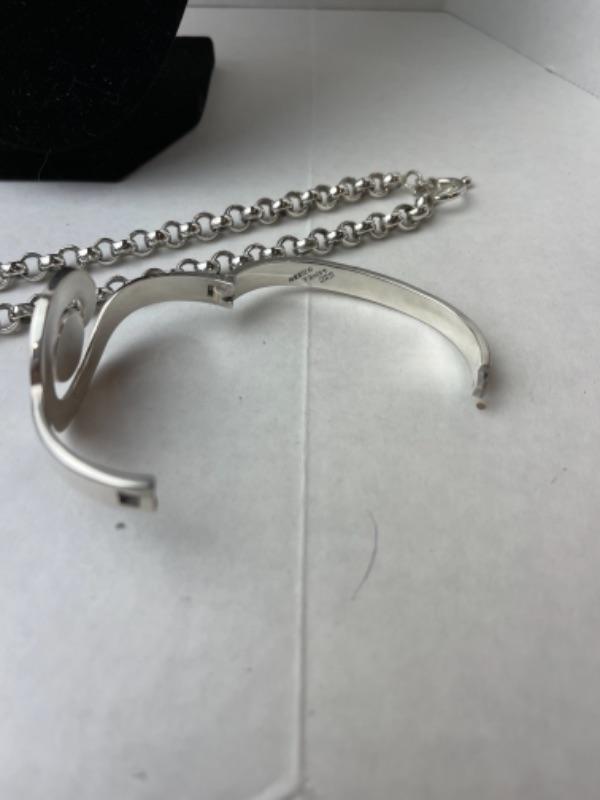 Necklace measures 20” long and bracelet 2.75” wide and inside is 1.75” on inside