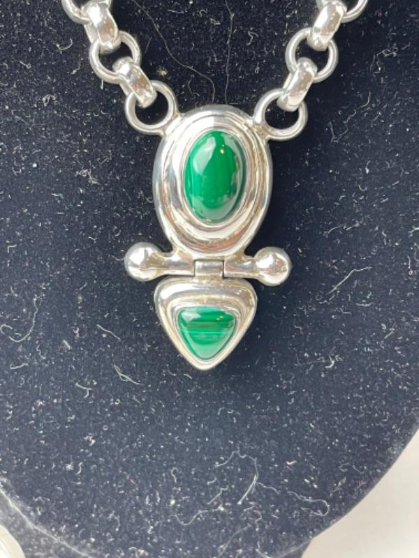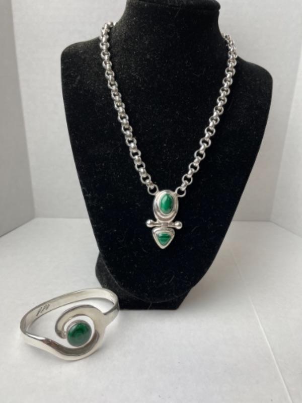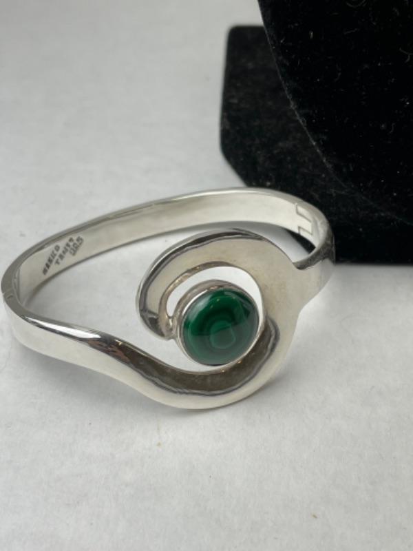K658 Sterling Silver Malachite & Bangle Bracelet