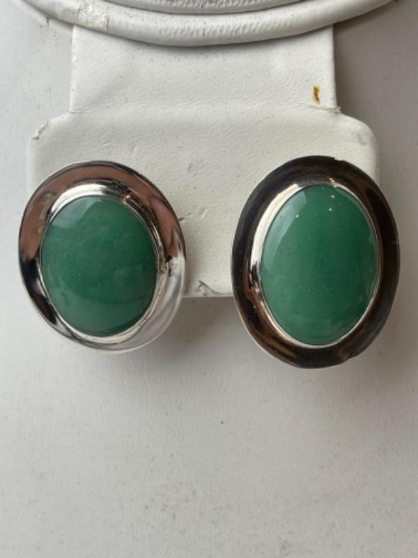 K665 Sterling Chalcedony Oval Earrings and Glass Pendant