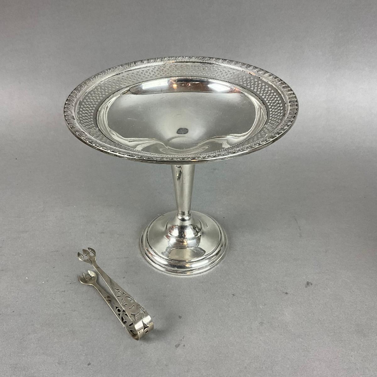 K639 Sterling Silver Weighted Pedestal Dish With Sterling Silver Tongs