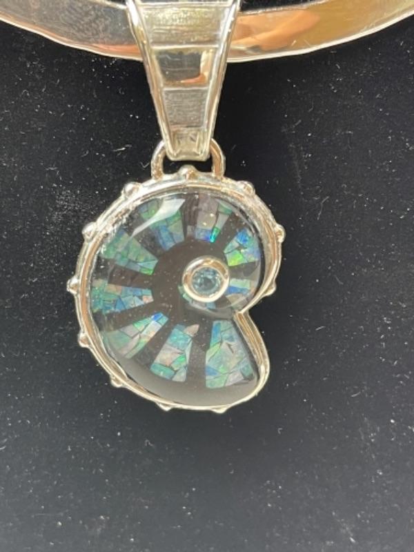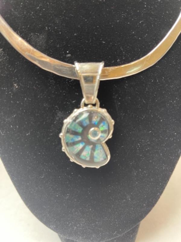 Choker is marked sterling, nautilus is marked 935 and has a blue round stone bezel set in center