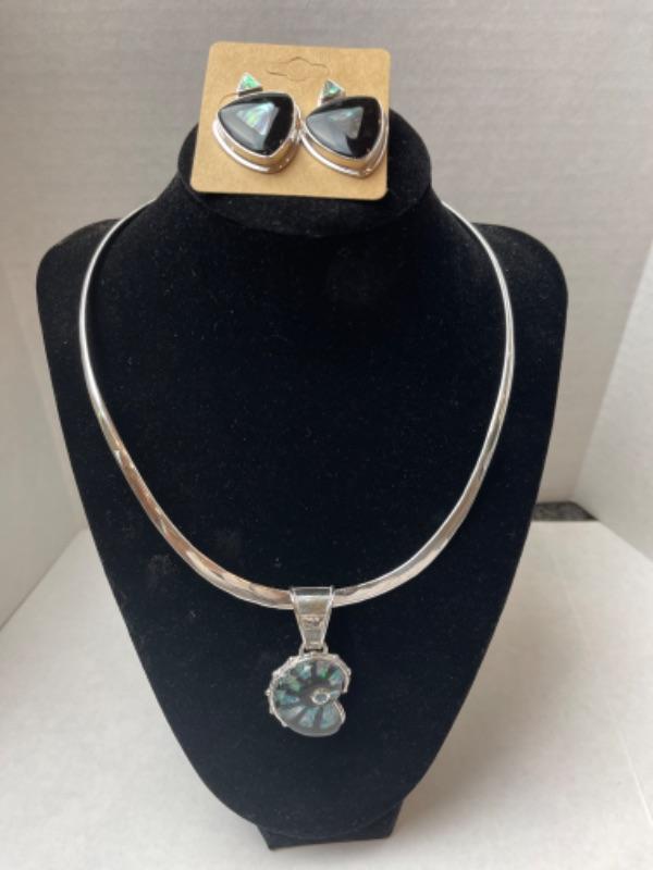 K642 Sterling Nautilus Choker Necklace and Earring Set