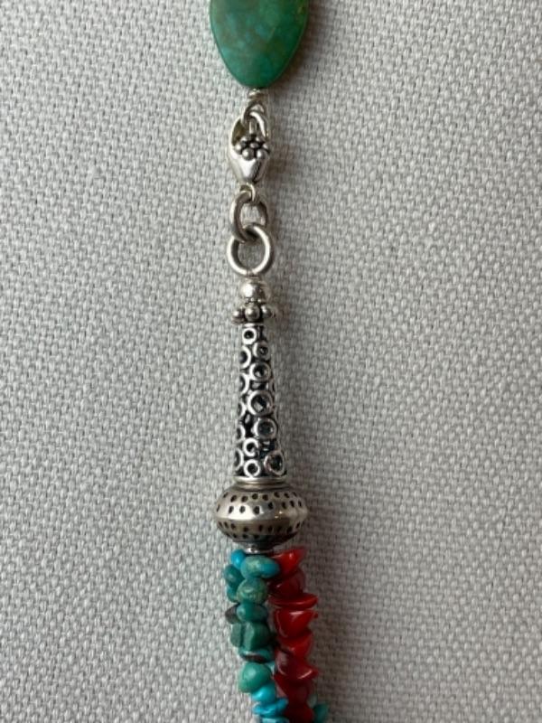 K647 Sterling Sea glass, Coral, Turquoise 24” Necklace