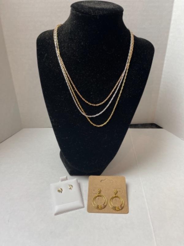 K648 14k Tri-Colored Gold Necklace and Earrings