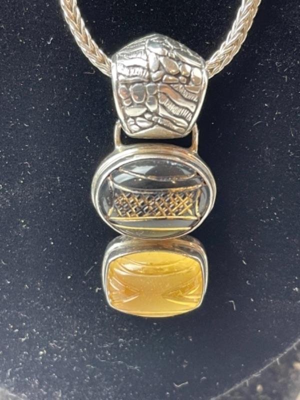 K651 Sterling Artisan Made Black and Gold Pendant/Necklace