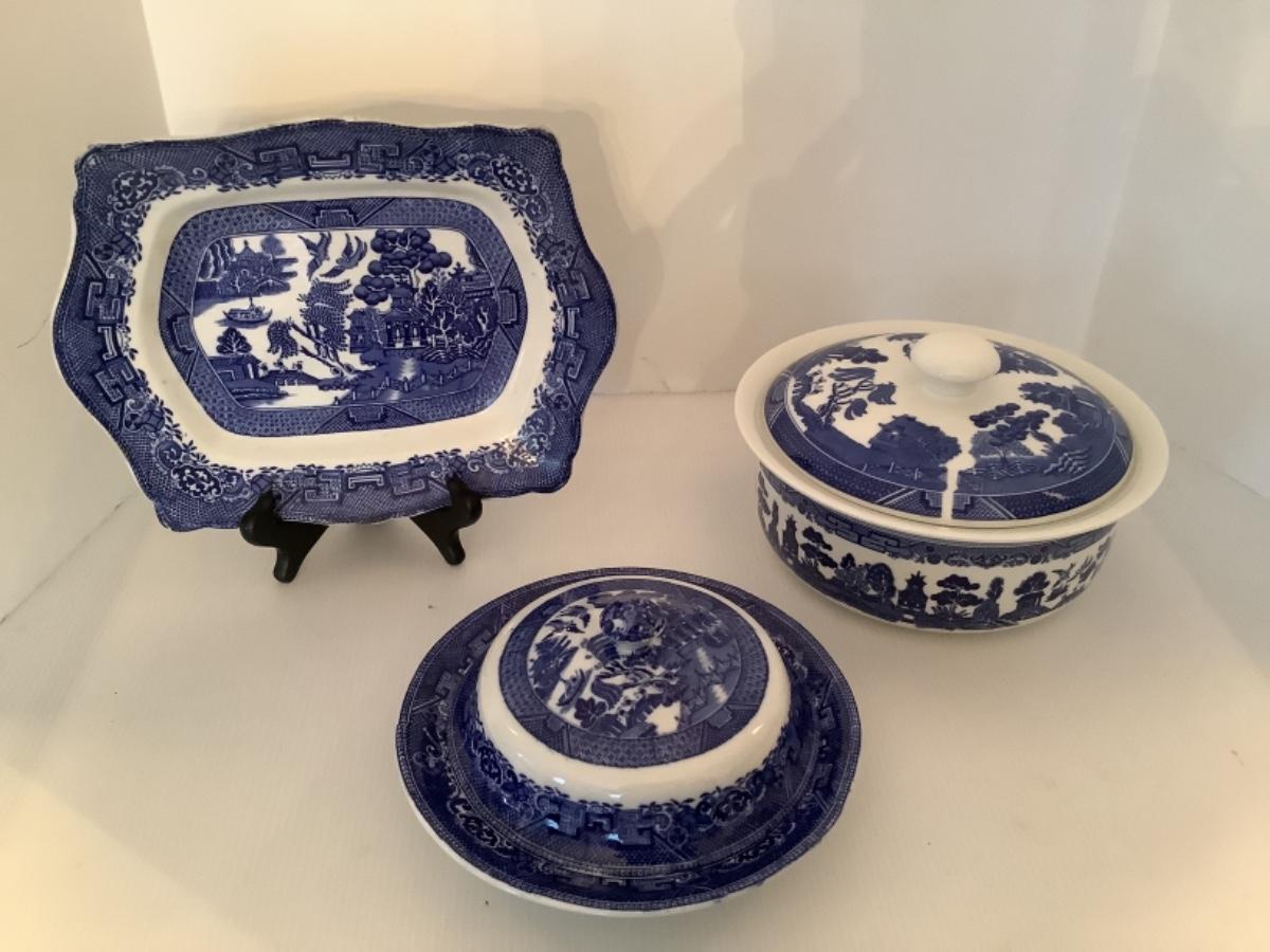 K679 Three pc. Blue and White Johnson Bros. Pottery Ironstone Lot