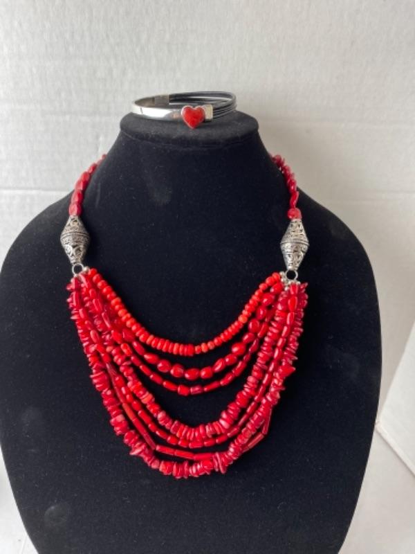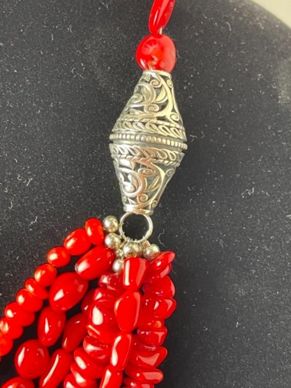 K679 Sterling Coral Necklace and Bracelet by Barse