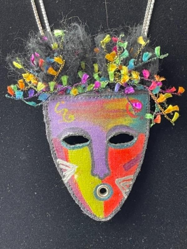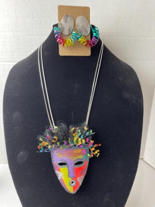K680 Artisan Made Mask Pendant/ Pin with Metal Earrings