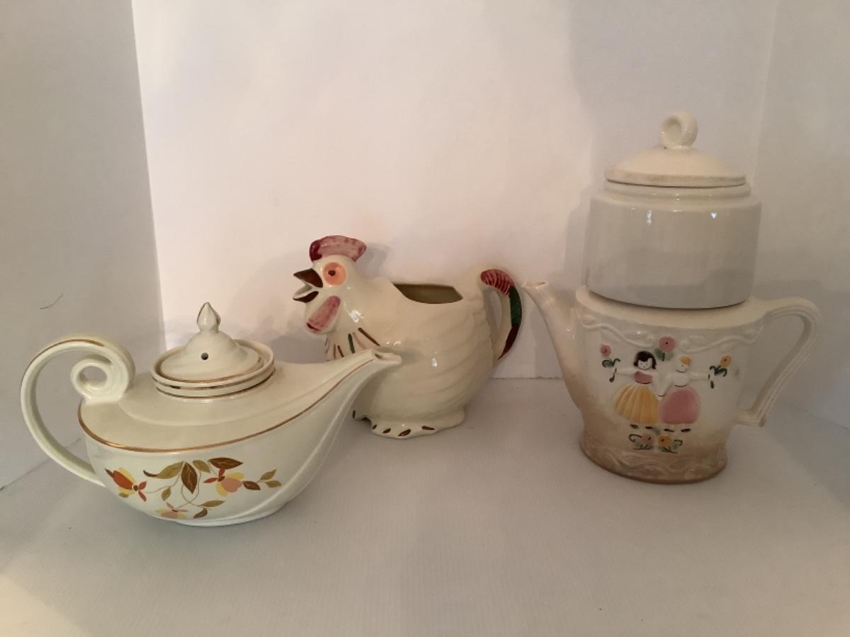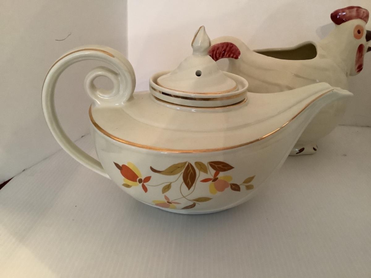K681 Vintage Porcelier Vitreous Drop Coffee Pot, Rooster , Hall Teapot