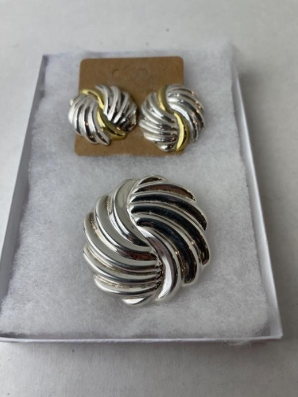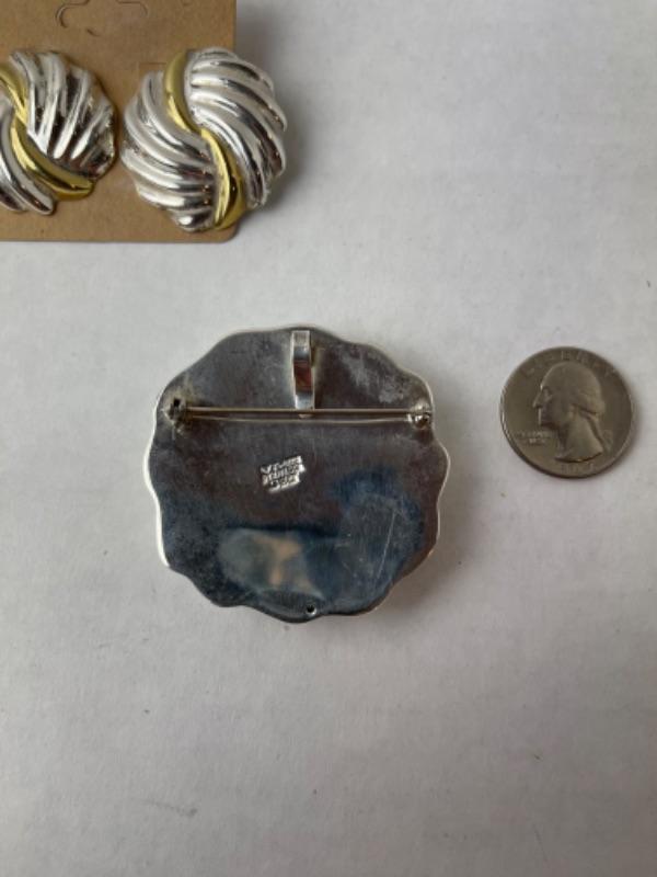 K685 Sterling Silver Pendant /Pin, Earring Set