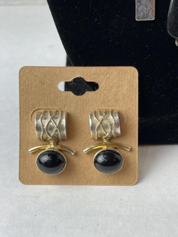 Earrings are pierced black onyx and measure 1” tall