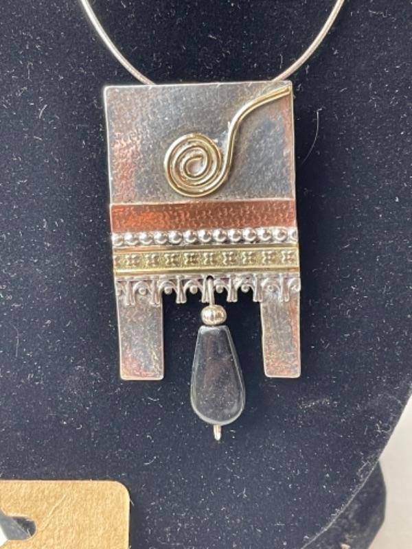 K690 Sterling Mixed Metal Artisan Pendant / Pin with Earrings Set