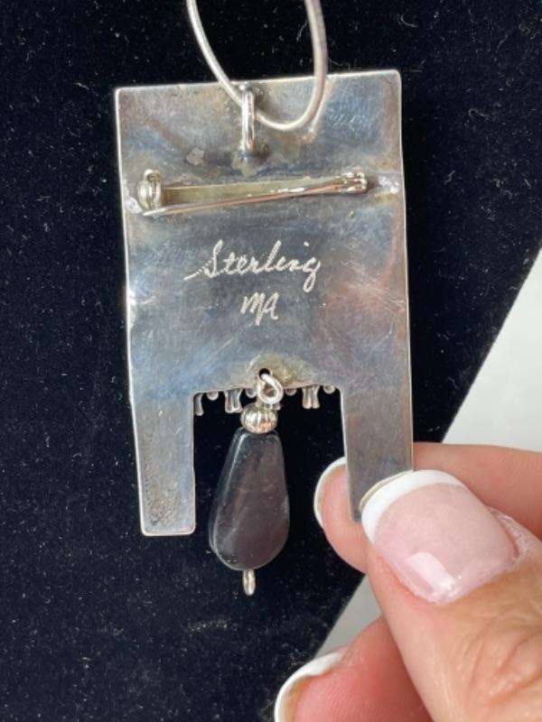Necklace is 16” long and pendant measures 2” tall x 1.26” signed sterling MA