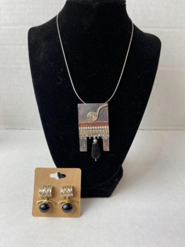 K690 Sterling Mixed Metal Artisan Pendant / Pin with Earrings  Set