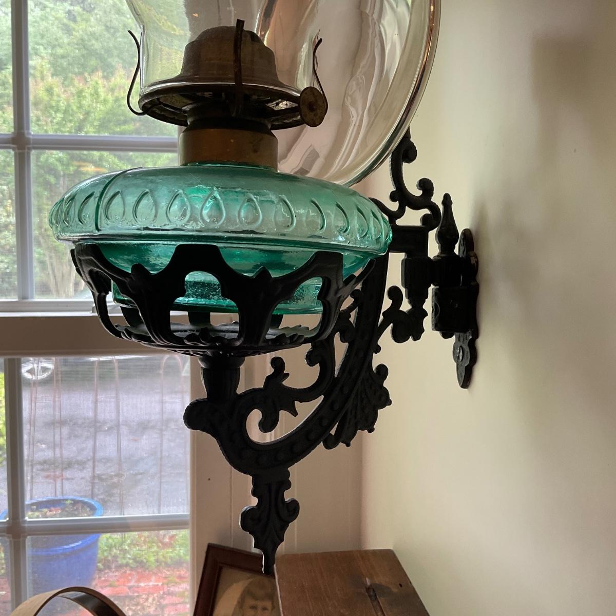 K692 Antique Cast Iron Single Arm Oil Lamp