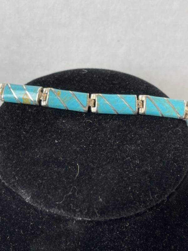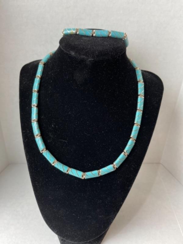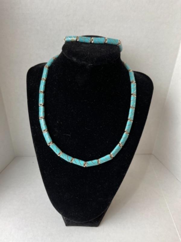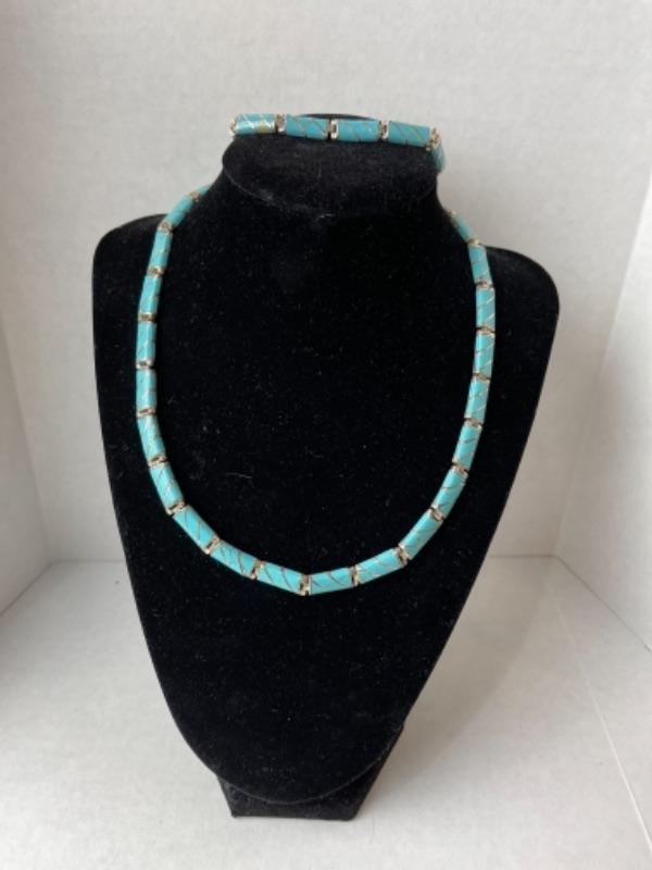 K693 Sterling Silver and Turquoise Necklace & Bracelet Set