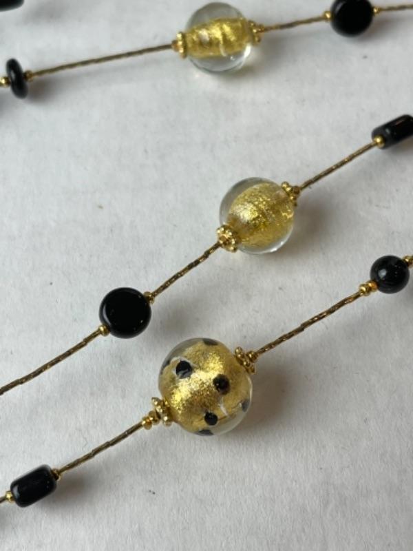 K694 Black And Gold Artisan Glass Beaded Necklace and Earring Set