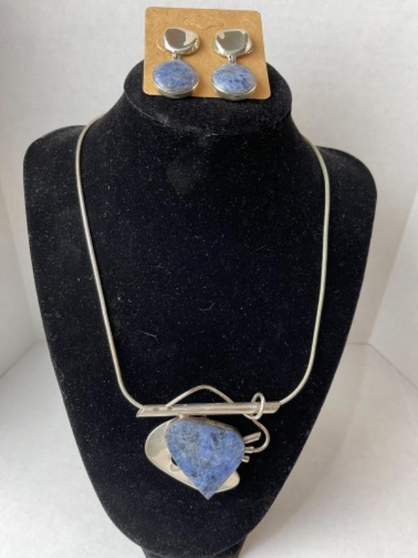 K695 Sterling Lapis Pin / Pendant Earring Set