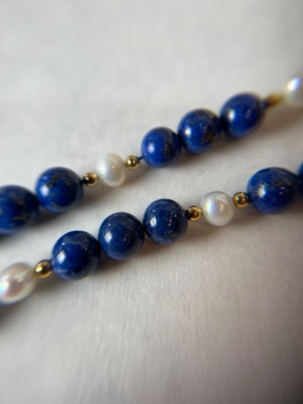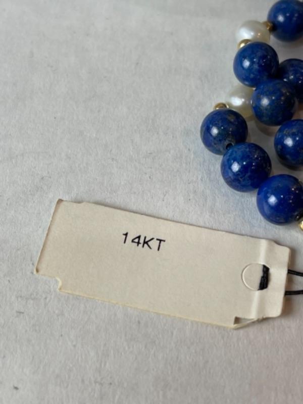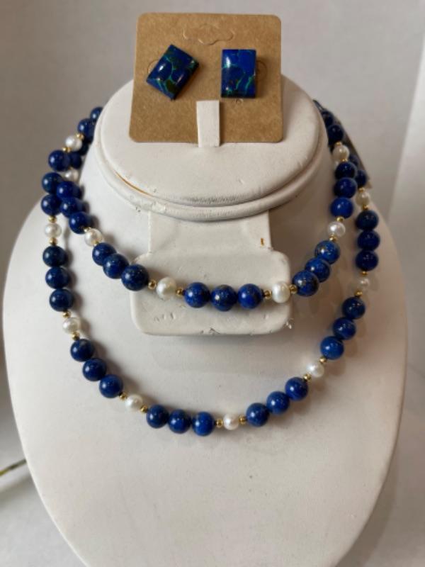 K699 New with Tag Pearl, Gold Blue Lapis Necklace with Earrings