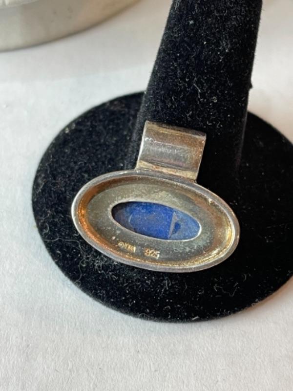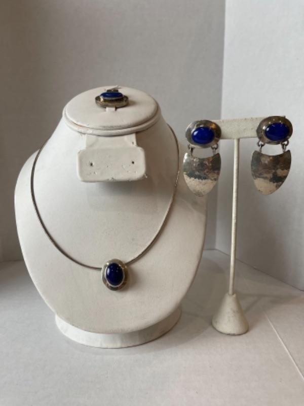 K701 Sterling Silver 3pc Blue Lapis Necklace /Slide Earring Set