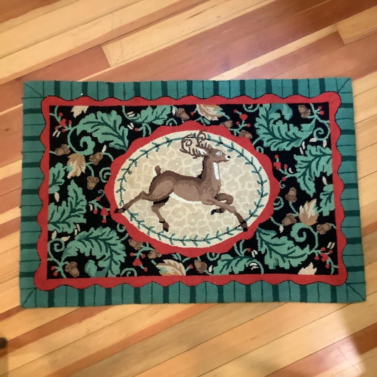 K704 Prancing Deer Wool Hooked Rug