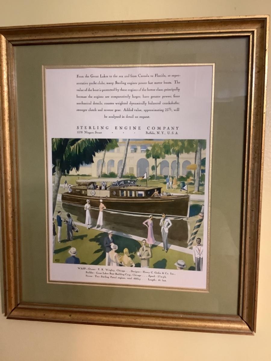 Framed Advertising Print of Sterling Engine Co. 15.5” x 13” wide