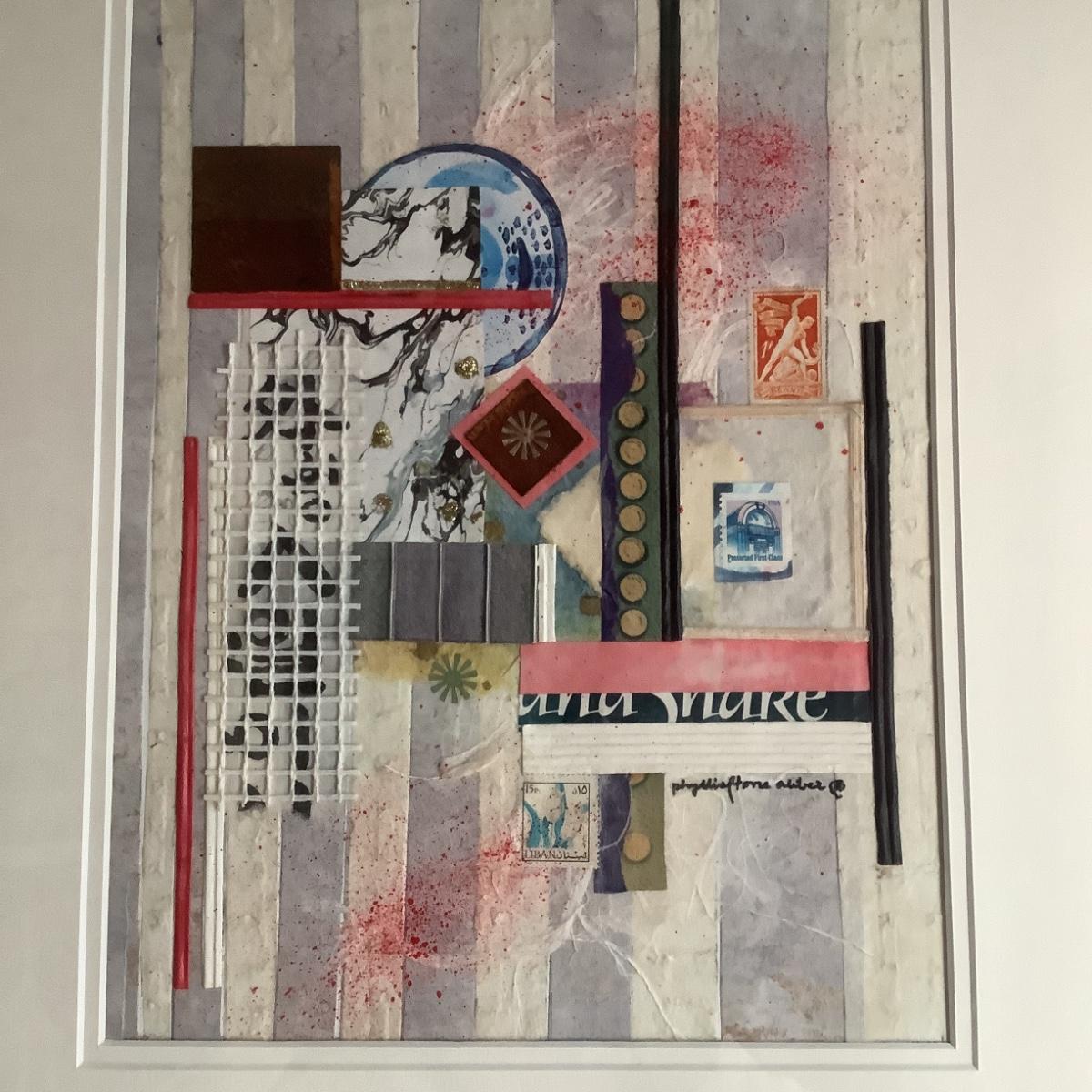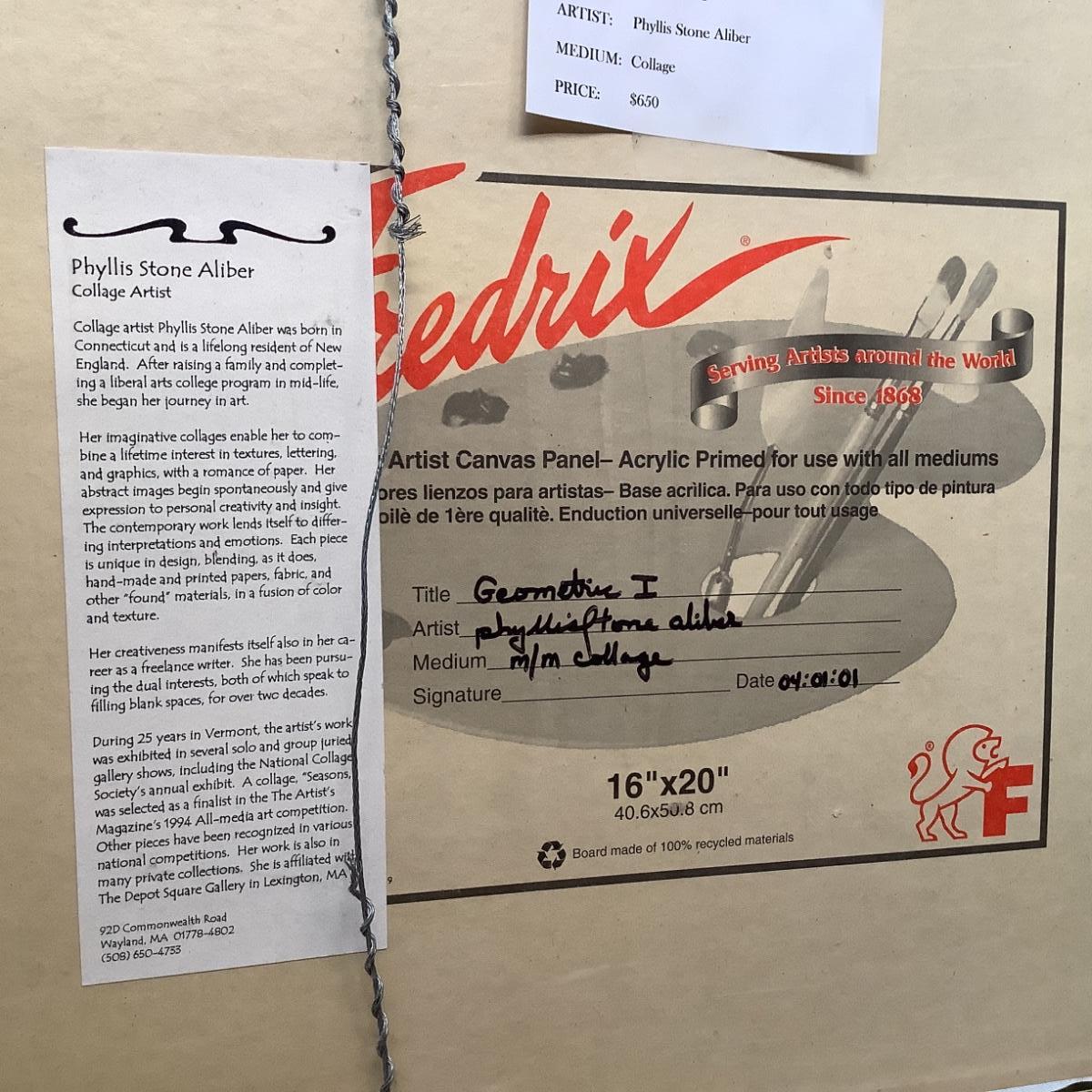 K705 Mixed Media Collage Art by Phyllis Stone Aliber “Geometric I”