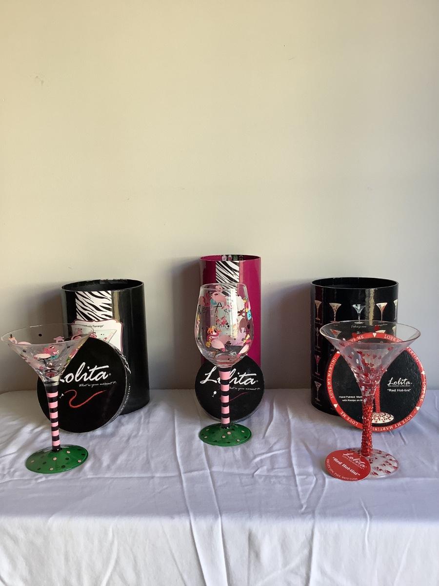 K708 Set of 3 Handpainted Lolita Martini and Wine Glasses