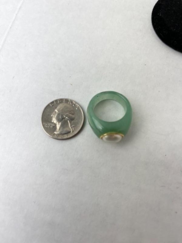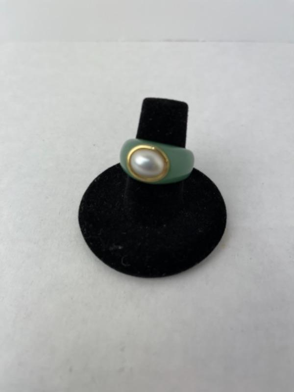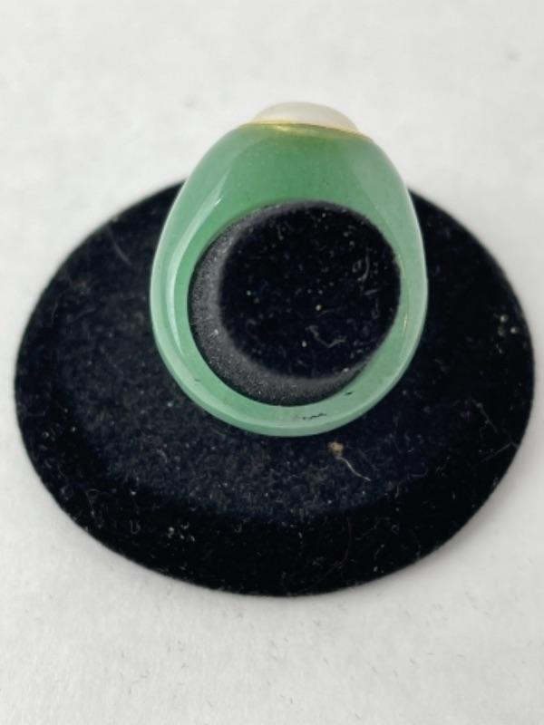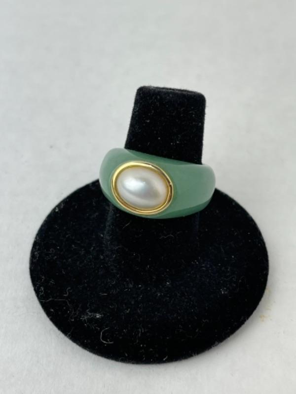 K711 14k Yellow Gold Pearl Jade Ladies Ring