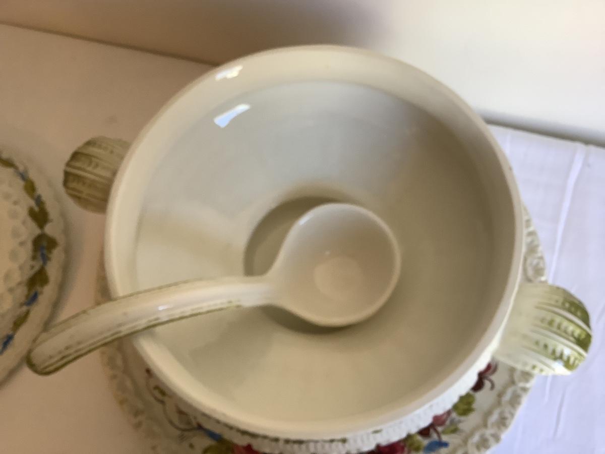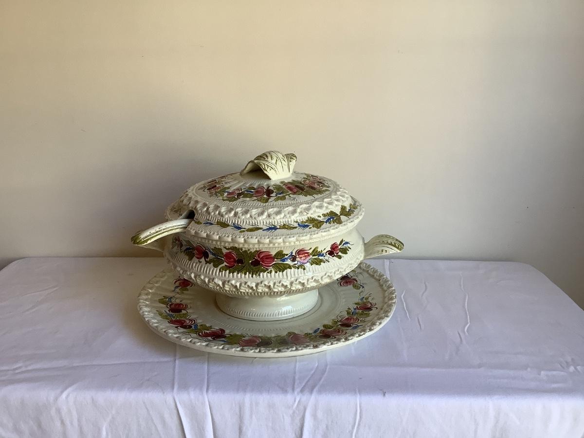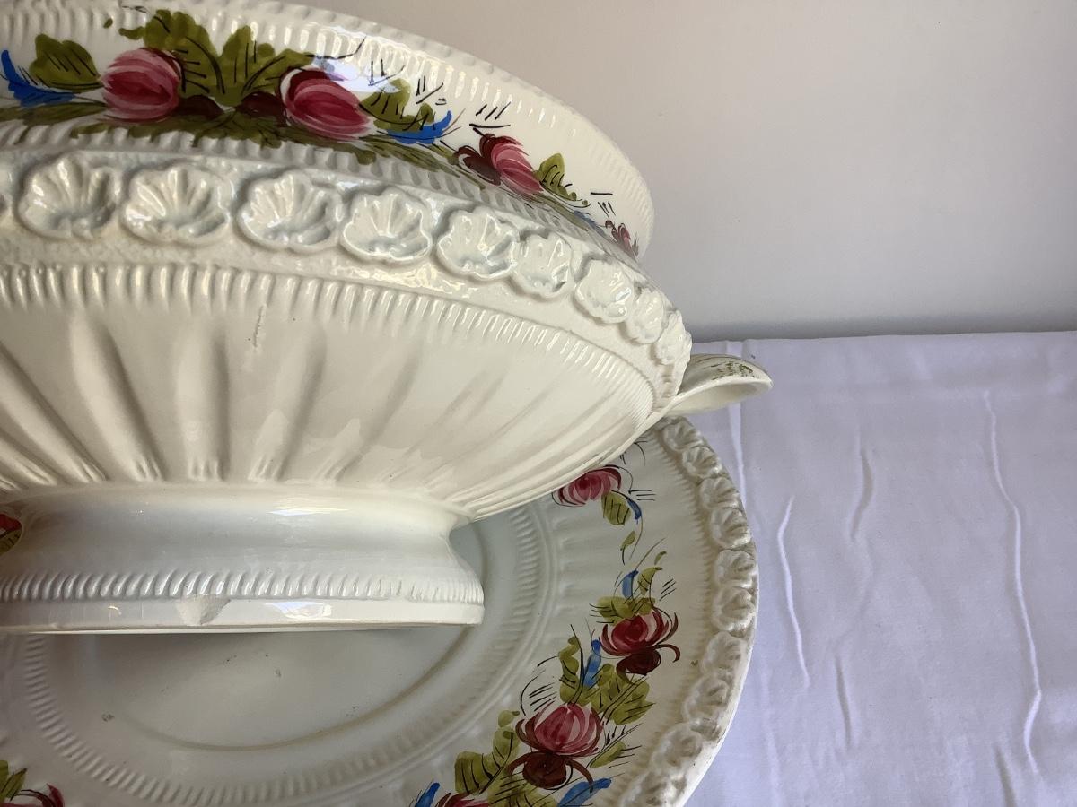 K718 Vintage Capodimonte Style Italian Soup Tureen with Ladle