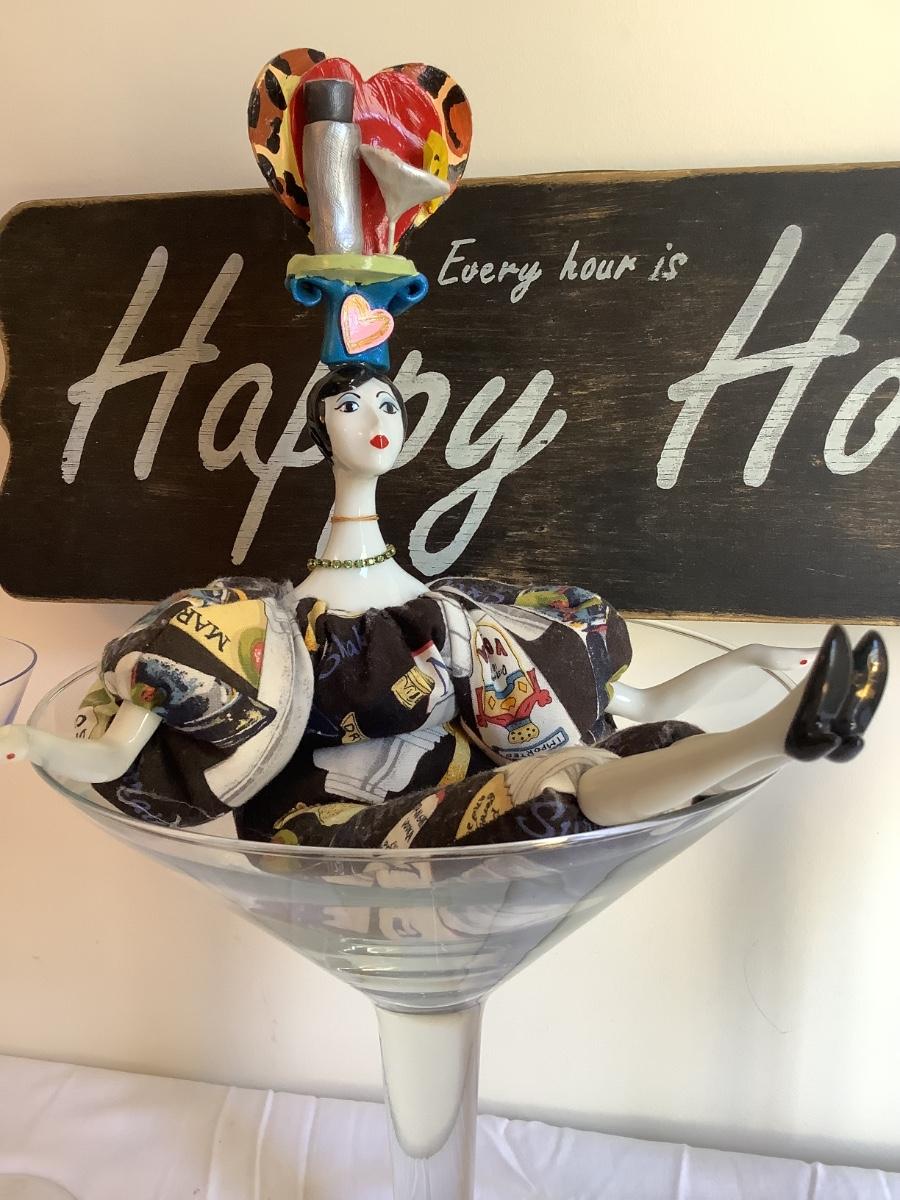 K719 Poupees by Isabelle Doll with Margarita and Wine Glasses