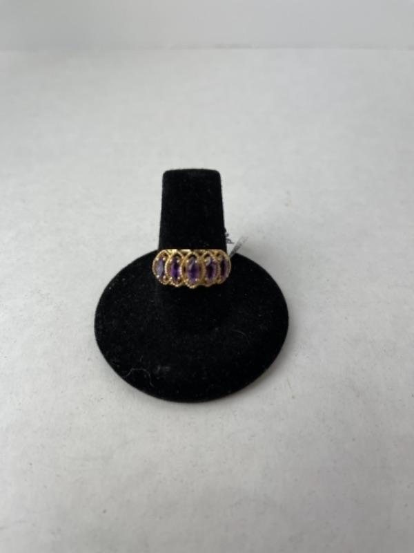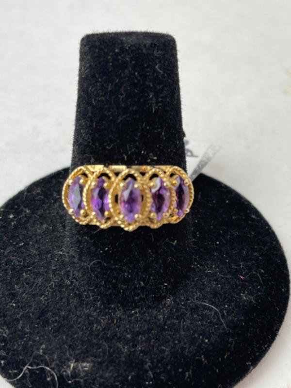 K726 10k Yellow Gold 5 Stone Amethyst Ladies Ring