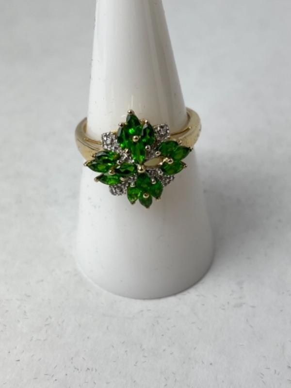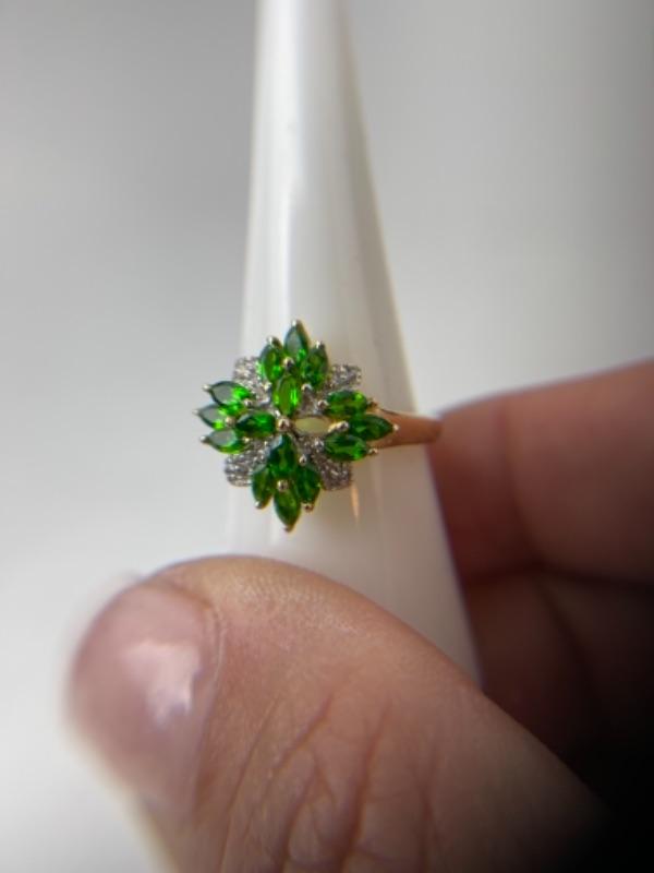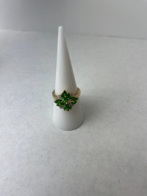 K728 14k Yellow Gold Emerald & Diamond Cluster Ring