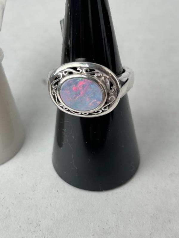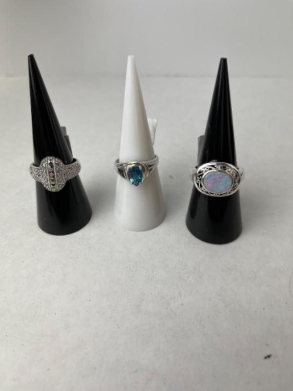 K731 Set of 3 Sterling Silver Opal, Topaz, Marcasite Ladies Rings